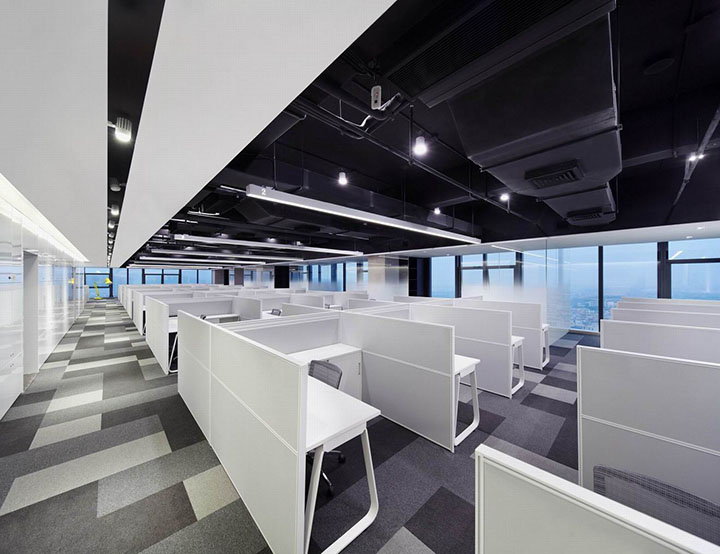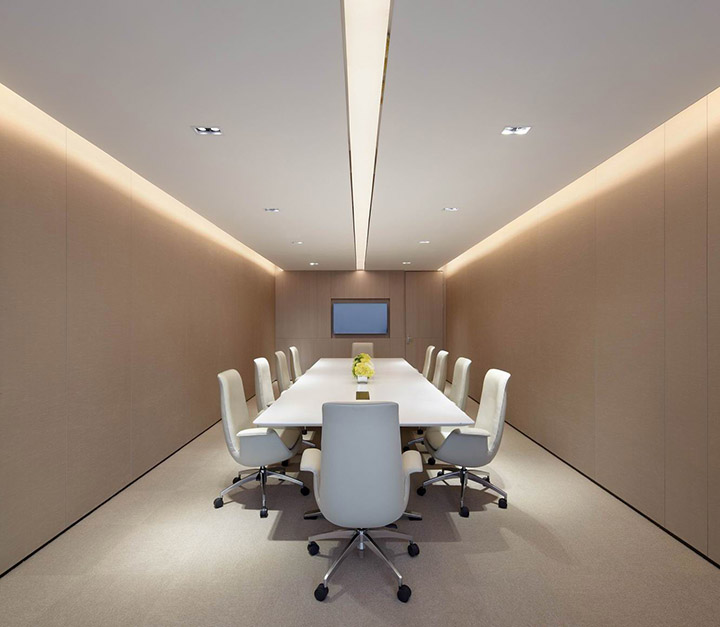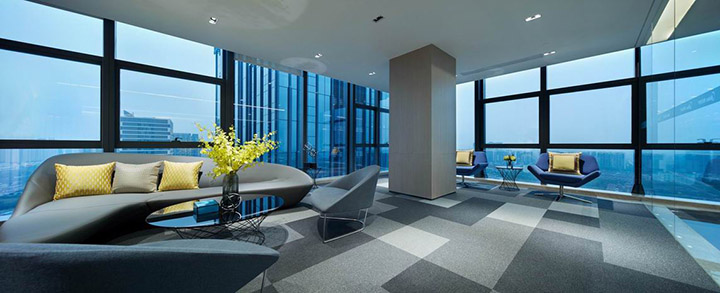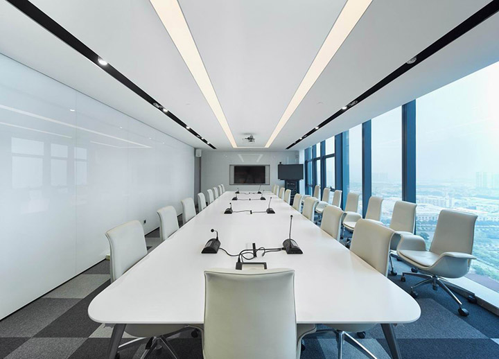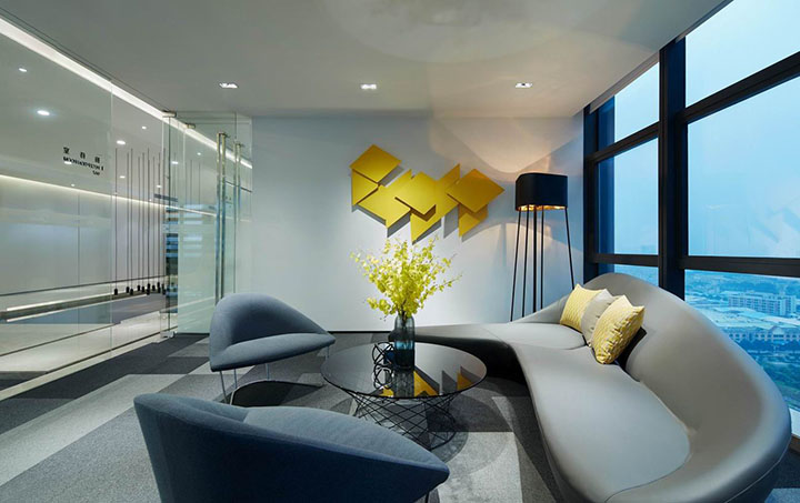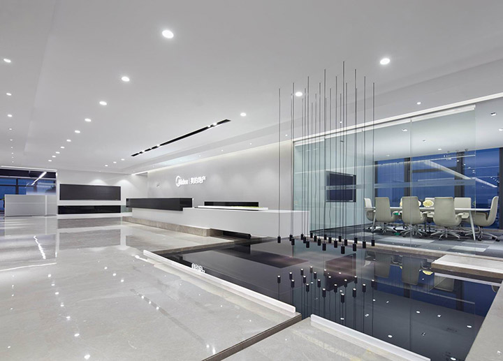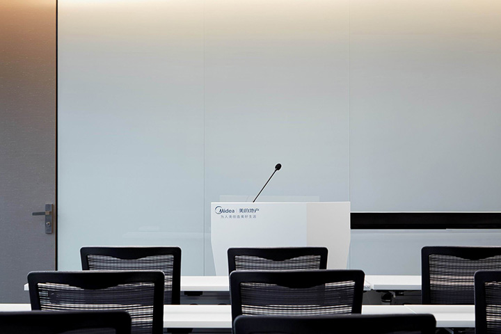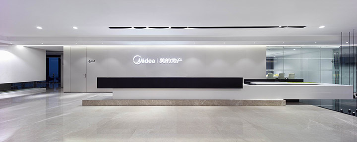 美的地產集團是美的控股下屬重要成員企業,在空間設計策略里融入了開放、和諧、務實、創新的美的精神,充分展現美的地產的企業形象。辦公室裝修設計空間整體以開放的姿態呈現,由接待區、辦公區、會議培訓區和總裁辦公區四個區域組成。辦公區可容納70人辦公,利用漸變玻璃作半圍合隔斷,在形成獨立總監辦公區的同時,還能讓所有員工享受窗外風景。